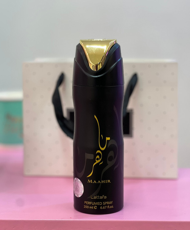 اسپری بدن ماهر مشکی لطافه (Lattafa Maahir Black) یکی از محبوبترین اسپریهای مردانه این برند اماراتی است. این اسپری با رایحهای لوکس، گرم و شرقی طراحی شده که الهام گرفته از عطر ماهر مشکی است و حس اعتماد به نفس و جذابیت مردانه را بهخوبی منتقل میکند.